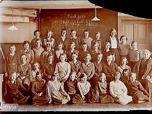 Vasaskolan, klassrumsinteriör, 36 skolflickor med lärarinna fröken Helga Svensson, sal 16.