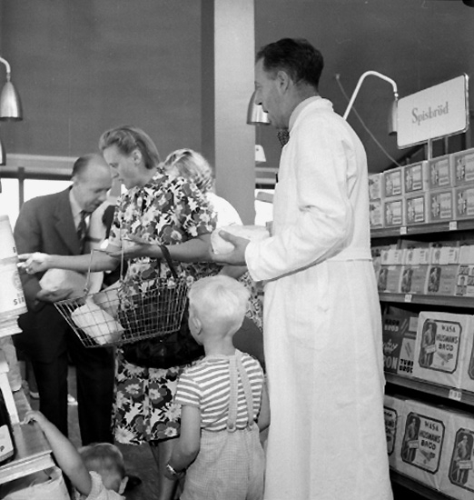 Konsum Rosta, affärsinteriör, kunder och personal.