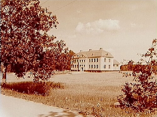 Kävesta Folkhögskola, tvåvånings skolbyggnad med frontespis och brutet tak.