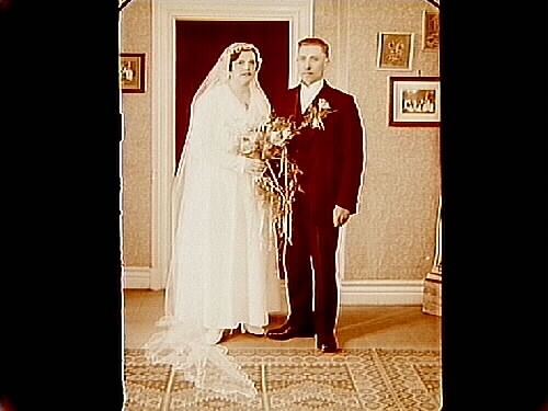 Brudpar. Bilden föreställer Gunnar Larsson, senare Erneblad (19021998) från Fellingsbro, som 12 mars 1933 gifter sig med Brita Wallin (19001978). Se även bild OLM-1933.163-1.