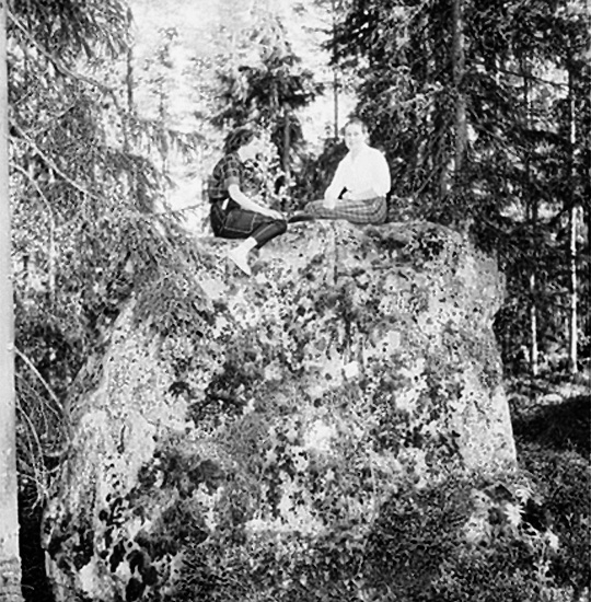 Två kvinnor på en sten.