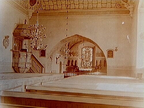 Mosjö kyrka, kyrkointeriör efter restaureringen.