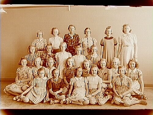 Engelbrektsskolan, klassrumsinteriör, 23 flickor med lärarinna fru Greta Zommarin, sal 24.