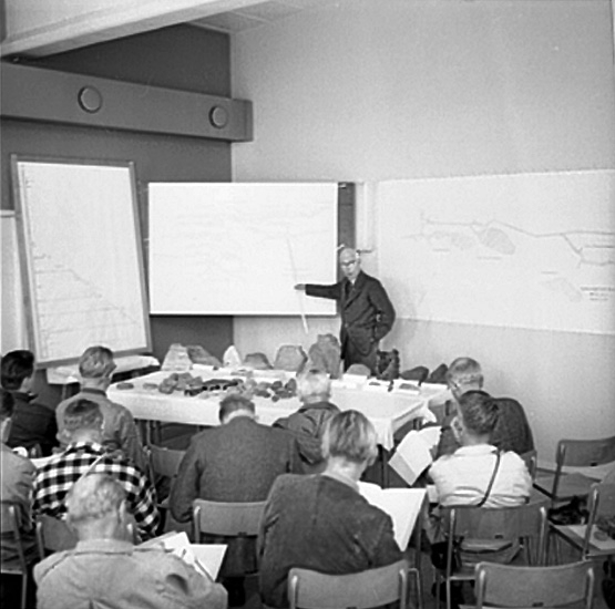 Geologer från hela världen samlade i Mossgruvan, interiör, grupp.