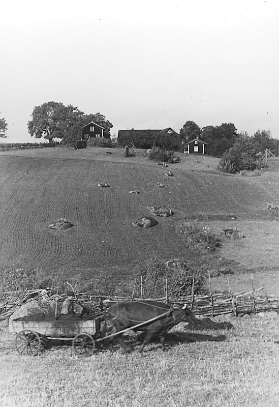 Stora Ykullen från söder. I förgrunden dragoxe och en man.