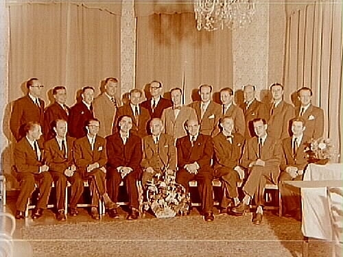 21 herrar, skolkamratmöte, 30-årsjubileum på Stora Hotellet, Gröna rummet.