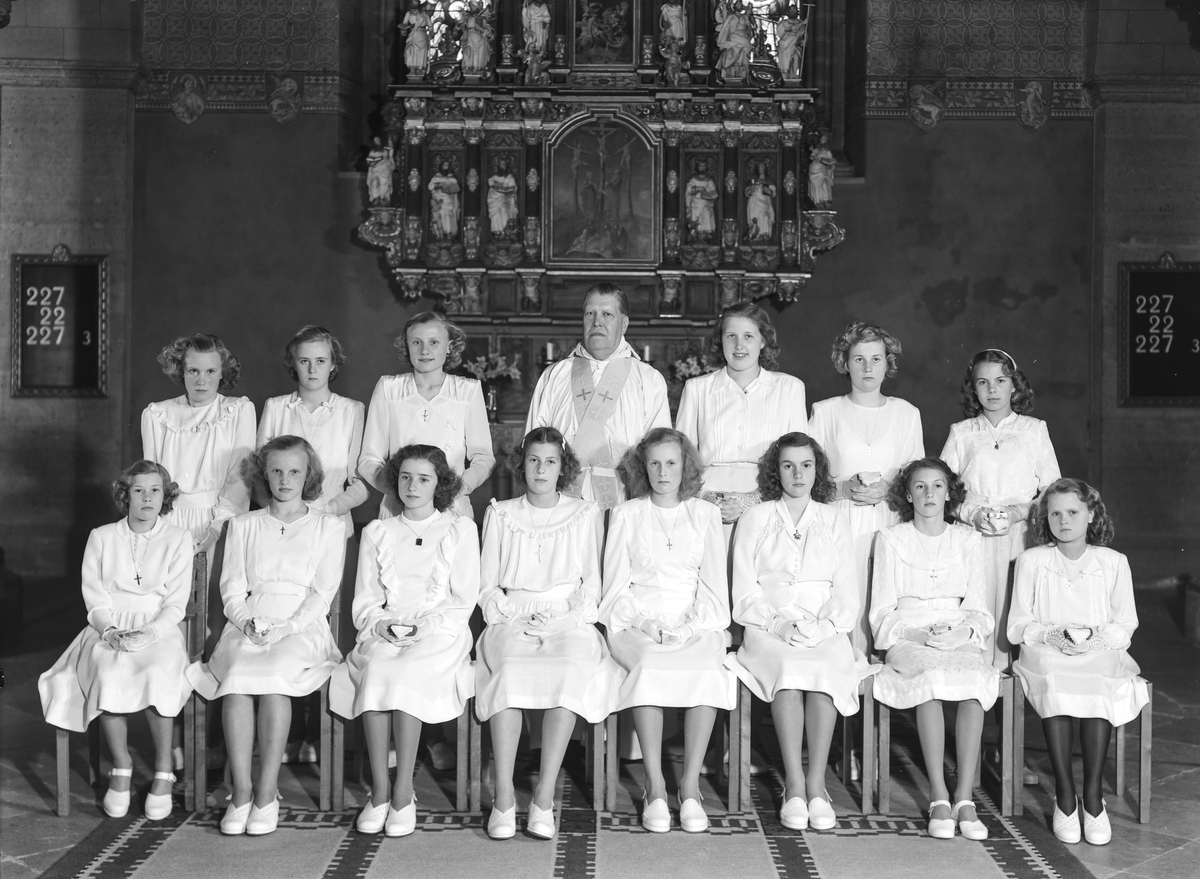 Konfirmation, 14 konfirmander och prosten Benny Bengtsson.