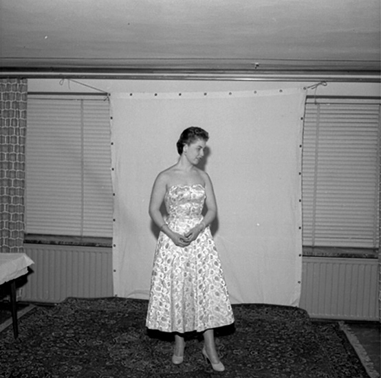 Hårdemonstration (modevisning) på hotell Laxbrogården i Kopparberg, en kvinna.
