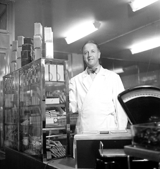 Titel: Konsum Rosta, affärsinteriör, en man.