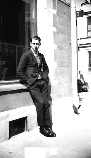 Byggnad, en man.