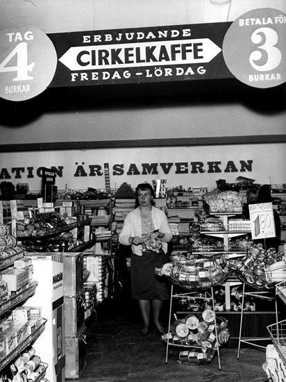 Konsum, affärsinteriör med kunder.