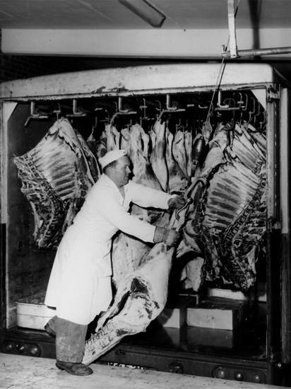 Konsum, charkuteriavdelningen, kylrummet, en man.