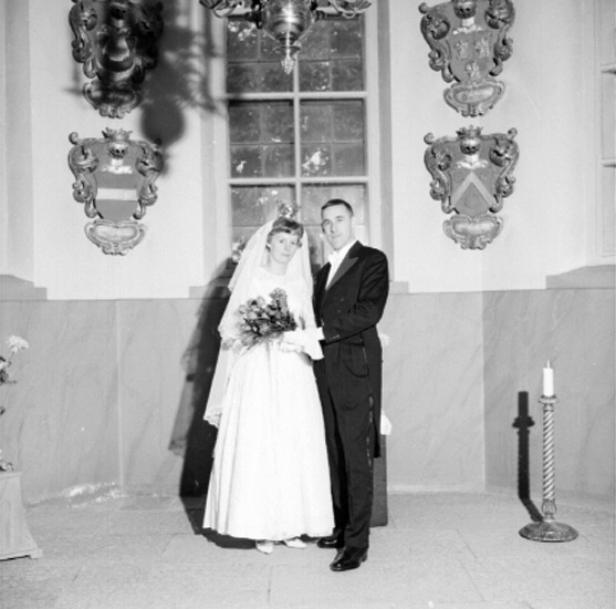 Interiör av Stora Mellösa kyrka, brudpar.