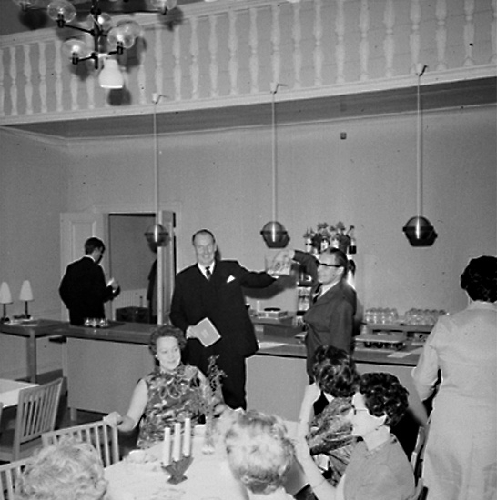 Titel: Interiör, grupp vid bordet. Kexens Konstklubb. Örebro Kexfabrik
