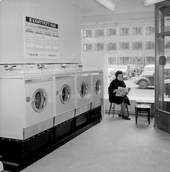 Konsum, Kemtvätt-bar, interiör, en kvinna.