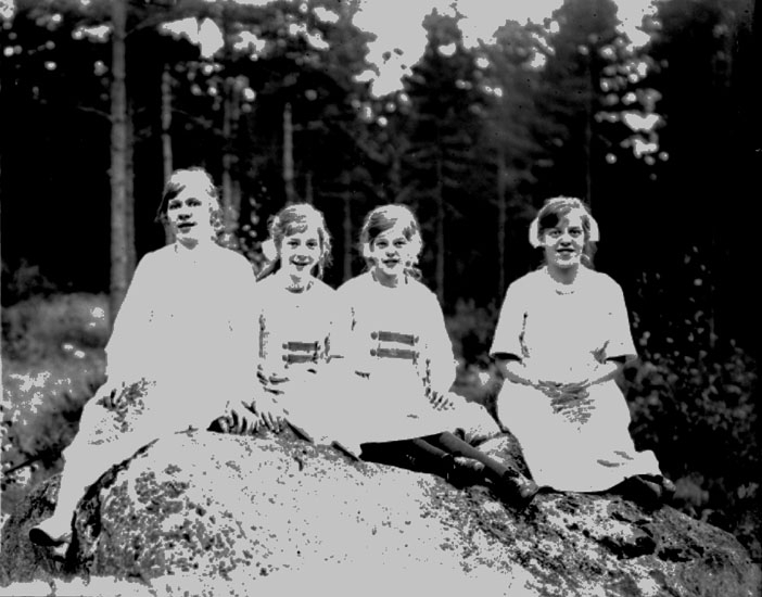 Fyra flickor på en sten.