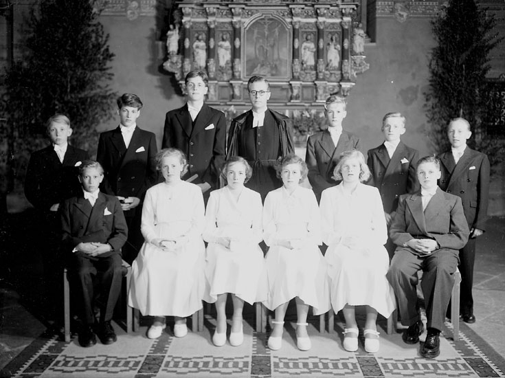 Tolv konfirmander, fyra flickor, åtta pojkar och pastor Rickard Åsberg.
