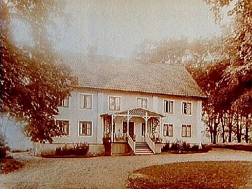 Lunds gård, stort tvåvånings bostadshus med stor veranda med snickarglädje.