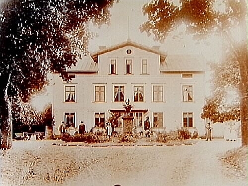 Nannberga gård, två och en halvvånings bostadshus, 7 personer framför huset.