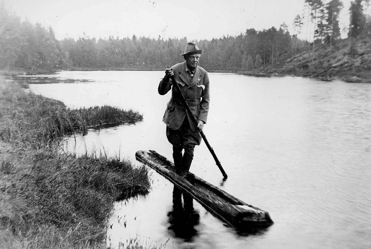 Stockkanot vid Packsjön, en man.