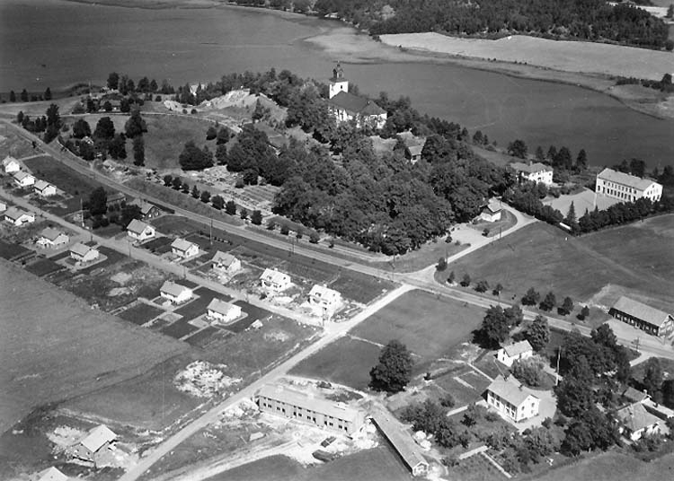 Flygfoto över Hammar, kyrkan, bostadshus.
