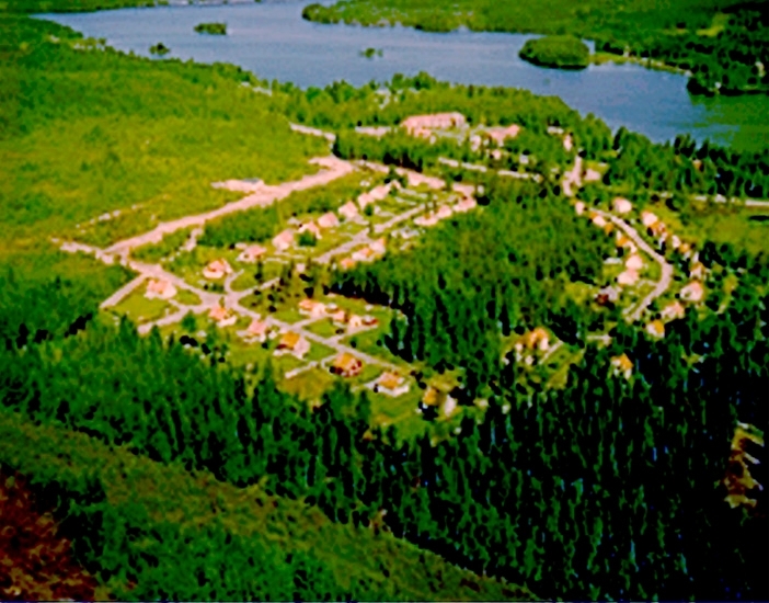 Titel: Flygfoto över Svartå. Bilden tagen för vykort.