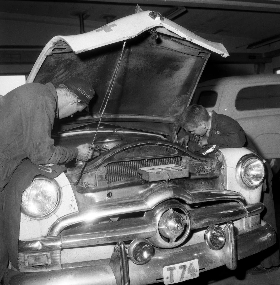 Titel: Jäktigt i bilverkstäderna. 17 juli 1959.