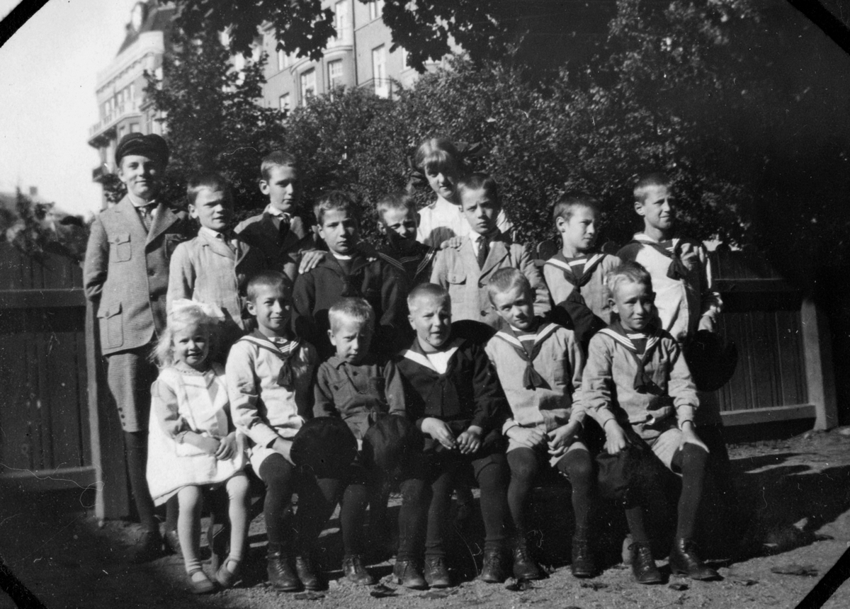 Barnen 1929. Greger med skolmössa (?), längst till vänster Ann-Marie (ej barnhemsbarn), systerdotter till syster Signe.