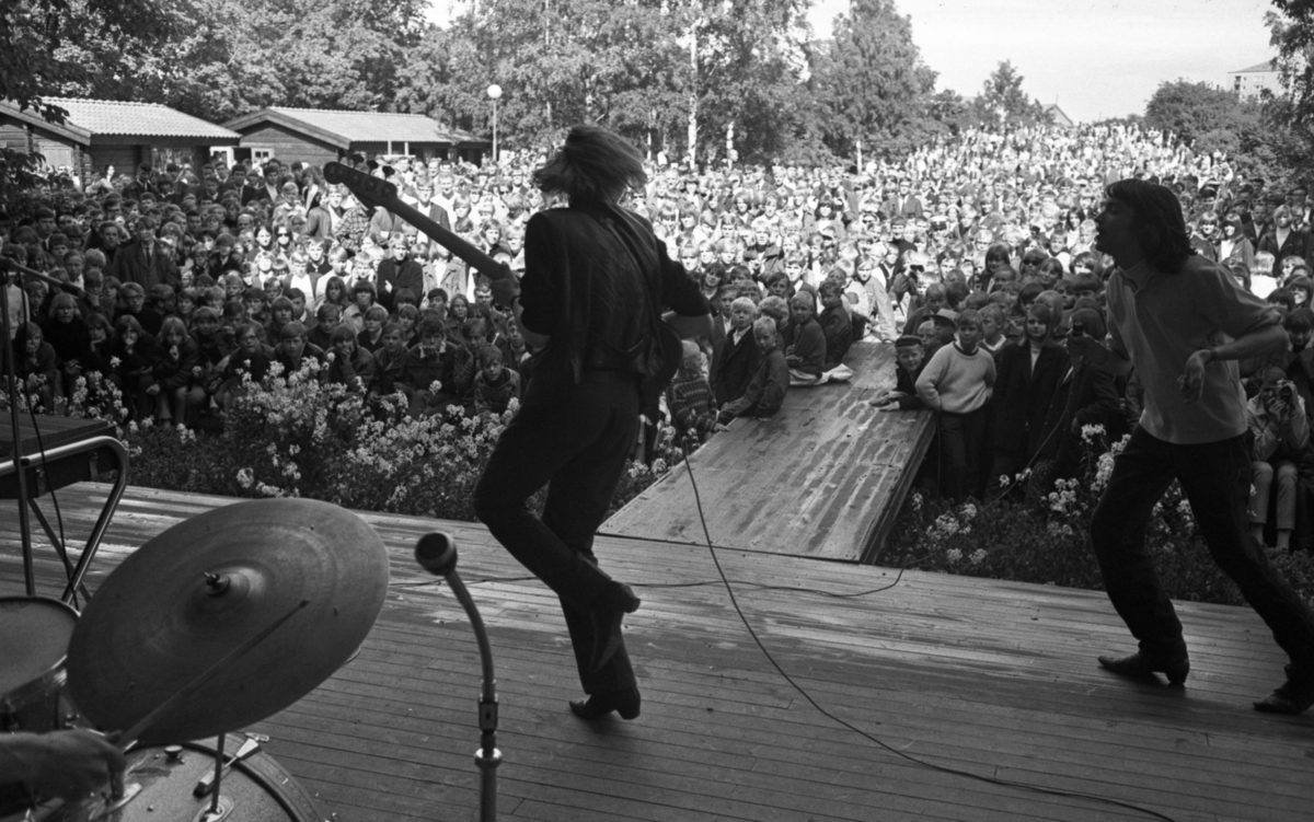 Popgruppen Hep Stars med sångaren Sven Hedlund uppträder in för publik.