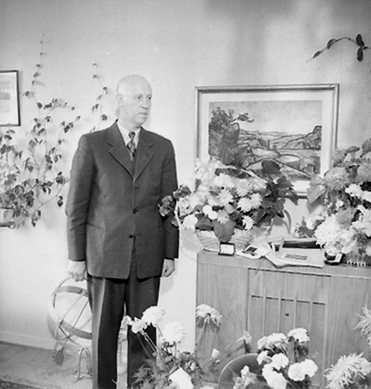 Titel: Rumsinteriör, en man. Tolander på 50-årsdagen.