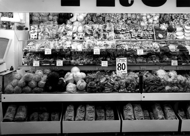 Konsum, affärsinteriör, grönsaksavdelningen.