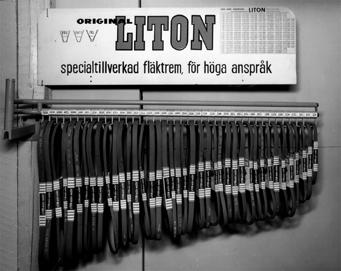 Titel: Allmotor AB, affärsinteriör med Liton fläktremmar. Motor Wallin.
