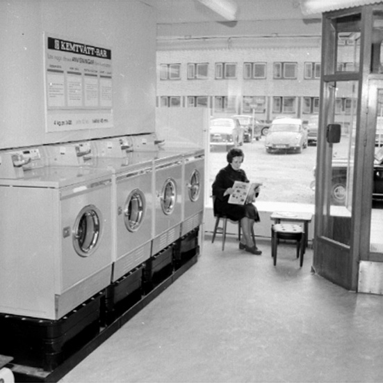 Konsum, Kemtvätt-bar, interiör, en kvinna.