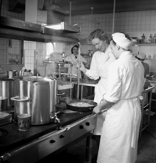 Konsum, restaurang Gyllingen, interiör från köket, personalen.