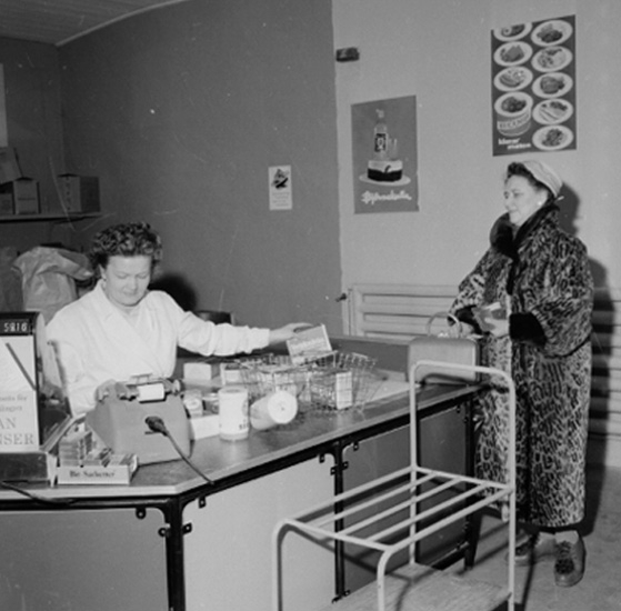 Titel: Konsum storköp, affärsinteriör, två kvinnor.