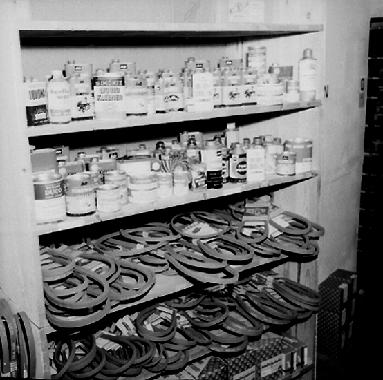 Titel: Allmotor AB, affärsinteriör med Liton fläktremmar. Motor Wallin.