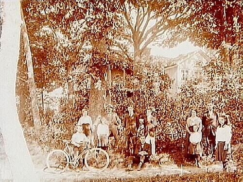 11 personer framför byggnaden.