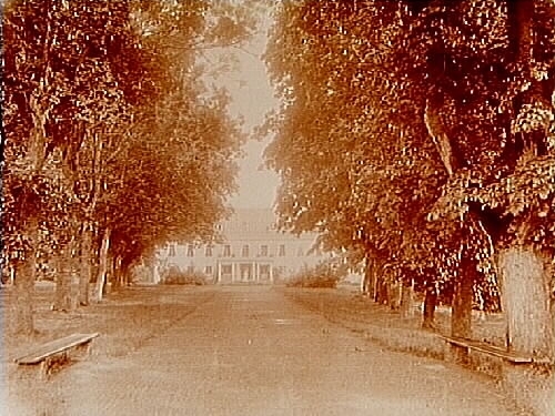 Sickelsjö Herrgård, tvåvånings herrgårdsbyggnad med balkong och entré med 4 pelare.