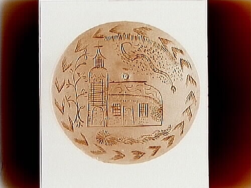 Gällersta kyrka efter gravering i blyplåt på gammal antik klocka, som finns hos Frans Oskar Larsson, Ekeby. På insidan av dörren finnes årtalet: 1794 den 18 juni. ( P.J.S.) (A.S.P.D.) (?)