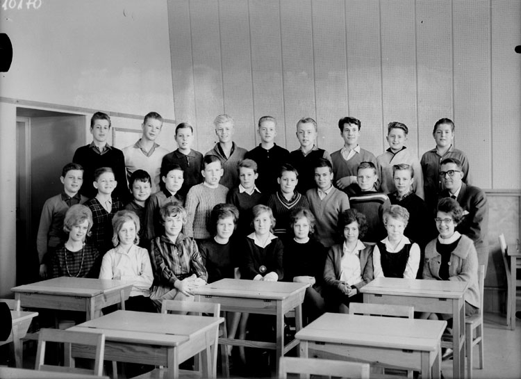 Vasaskolan, klassrumsinteriör, 28 skolbarn med lärare Olle Kanhov.