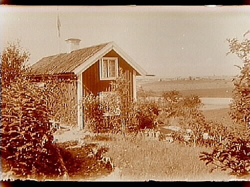 Sommarstugan Fridensborg, envånings sommarstuga med inredd vind och stor veranda mot väster. Utsikt mot staden Örebro.