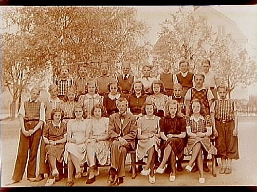 Almby skola, 12 flickor och 12 pojkar med lärare Albert Johansson, klass 7.
