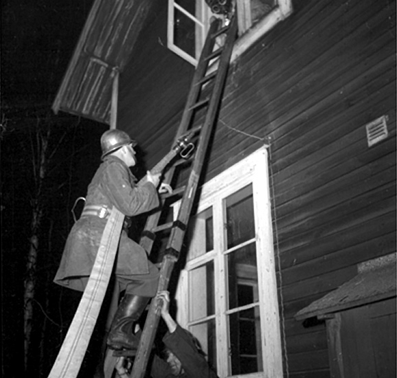 Titel: Brandkåren i Ställdalen, brandsläckningsarbete, brandmän.