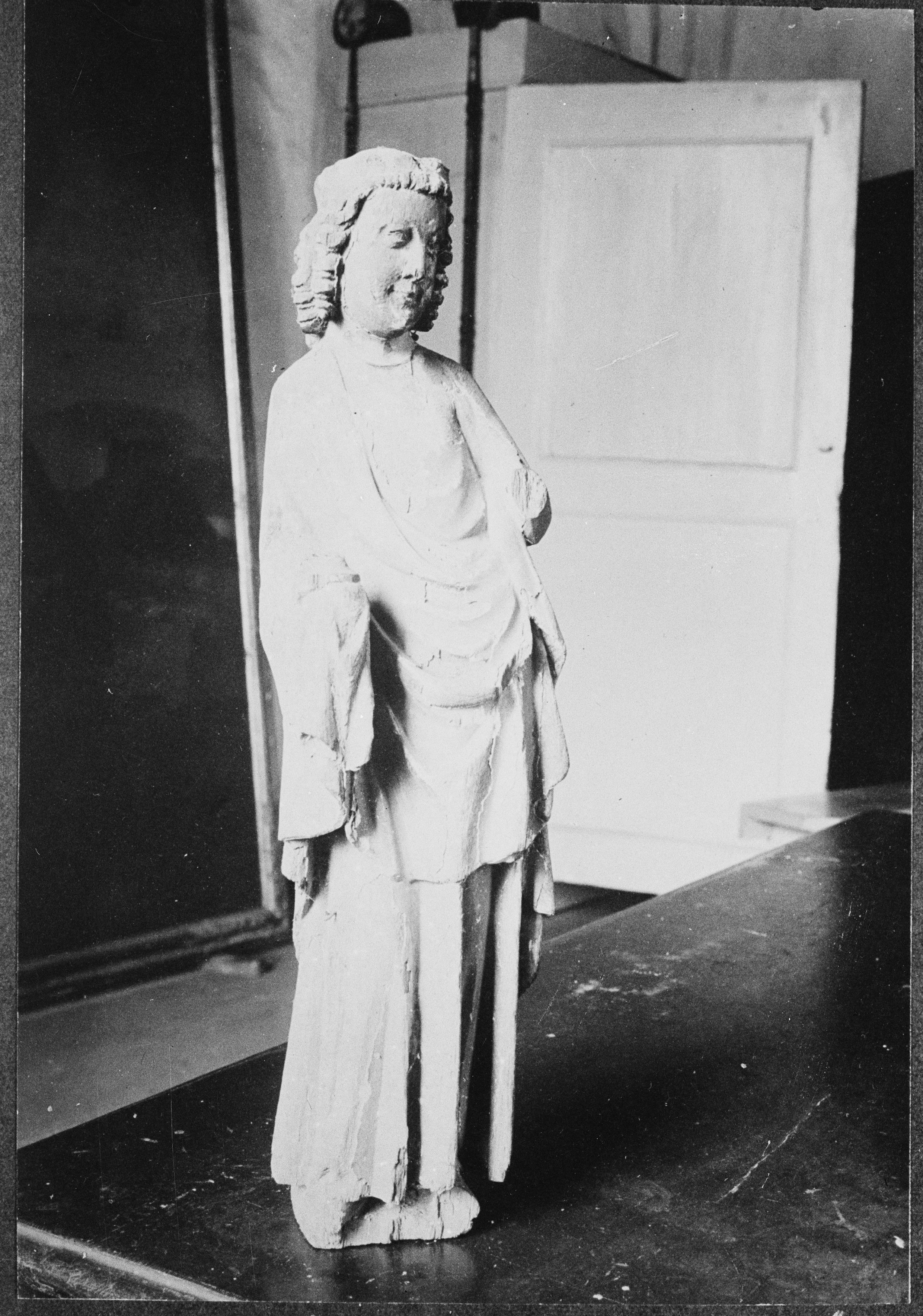 Skulptur, trä, manligt helgon, 1300-talets förra hälft.