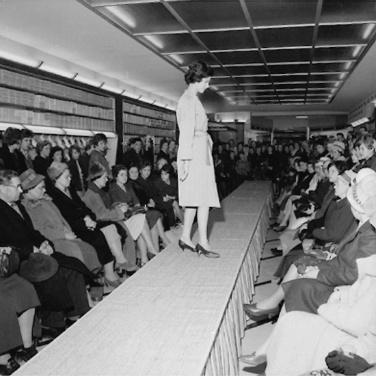 Titel: Oscarias nya affär, skoaffärsinteriör, modevisning.