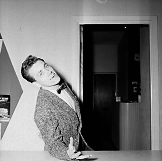 Rumsinteriör, en man ur personalen på Sedell Reklam AB.