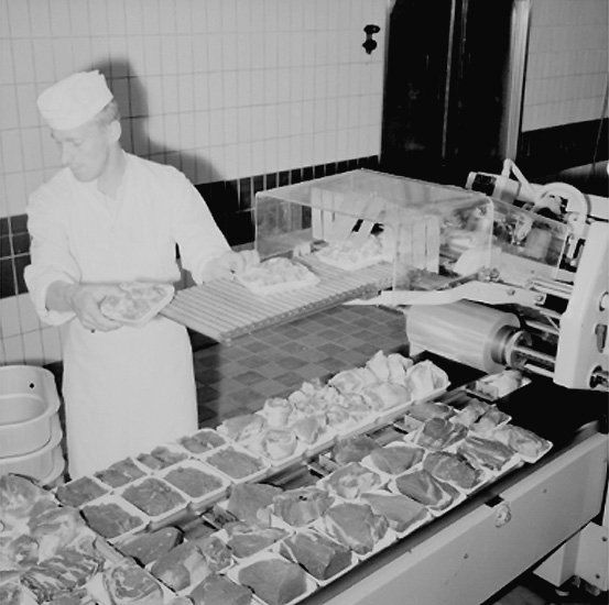 Titel: Konsum, charkuteriavdelningen, interiör, en man.