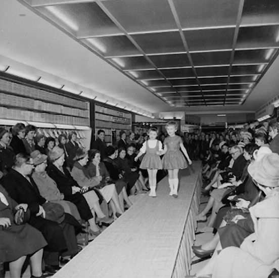 Oscarias nya affär, skoaffärsinteriör, modevisning.