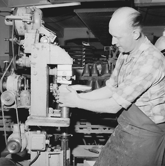 Oscaria Skofabrik, interiör, skotillverkning, en man.