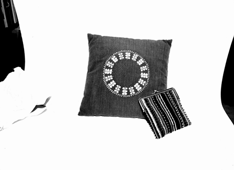 Garn, handarbeten, strumpor, affärsinteriör, prydnadskudde, portmonnä.